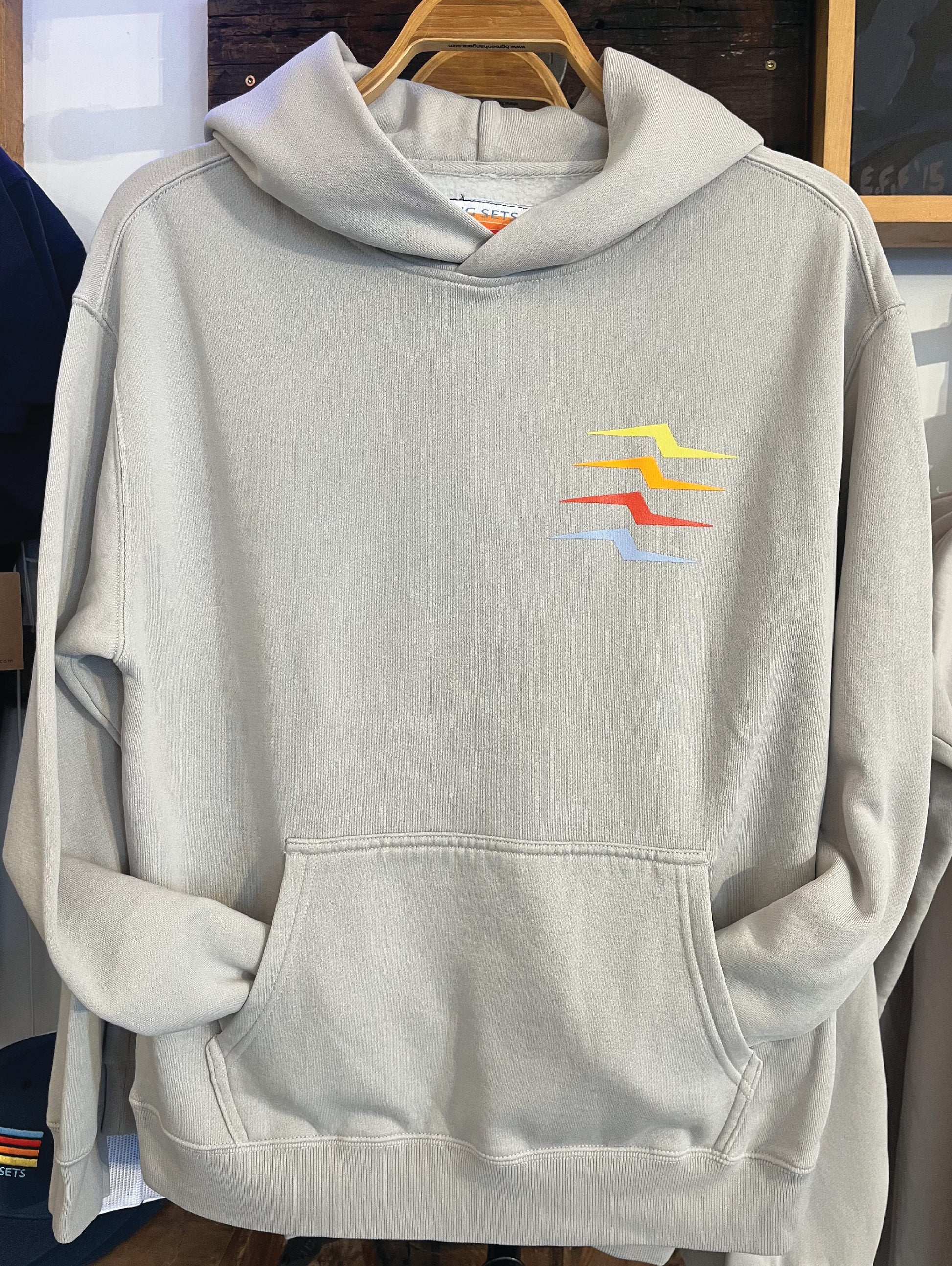 Our relaxed comfy midweight hoodie with a little fade and color. Get comfy after finding some of those electric sets.